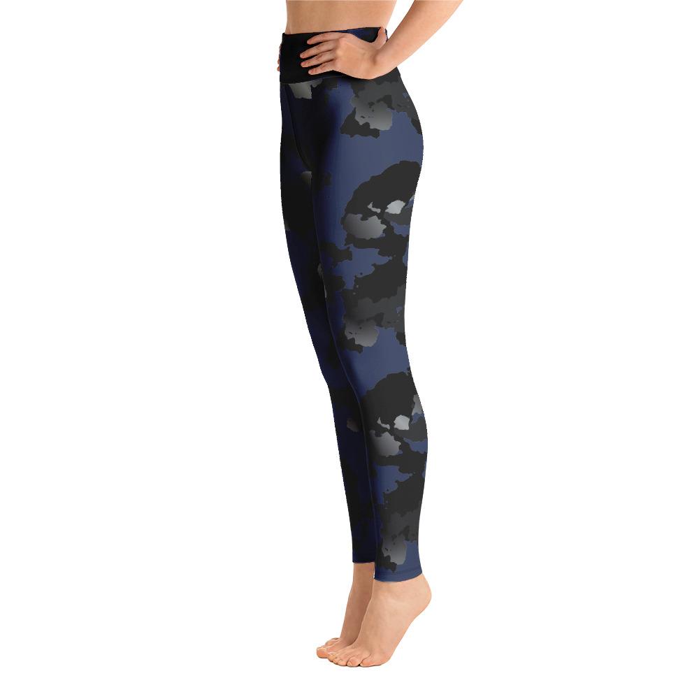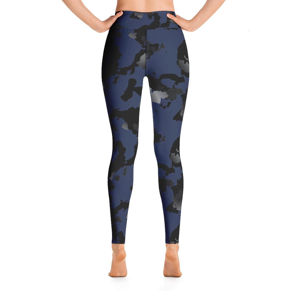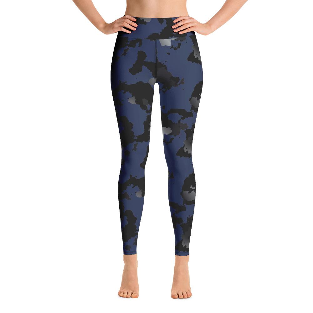 High waist leggings - Lux Camo Navy. Super soft and comfortable printed yoga leggings, made out of moisture wicking microfiber. Four-way stretch made to withstand the most strenuous stretching and exercise - perfect for yoga, pilates and barre. High waist keeps you covered and provides gentle tummy tucking. Modern and luxurious twist on the classic camouflage design.