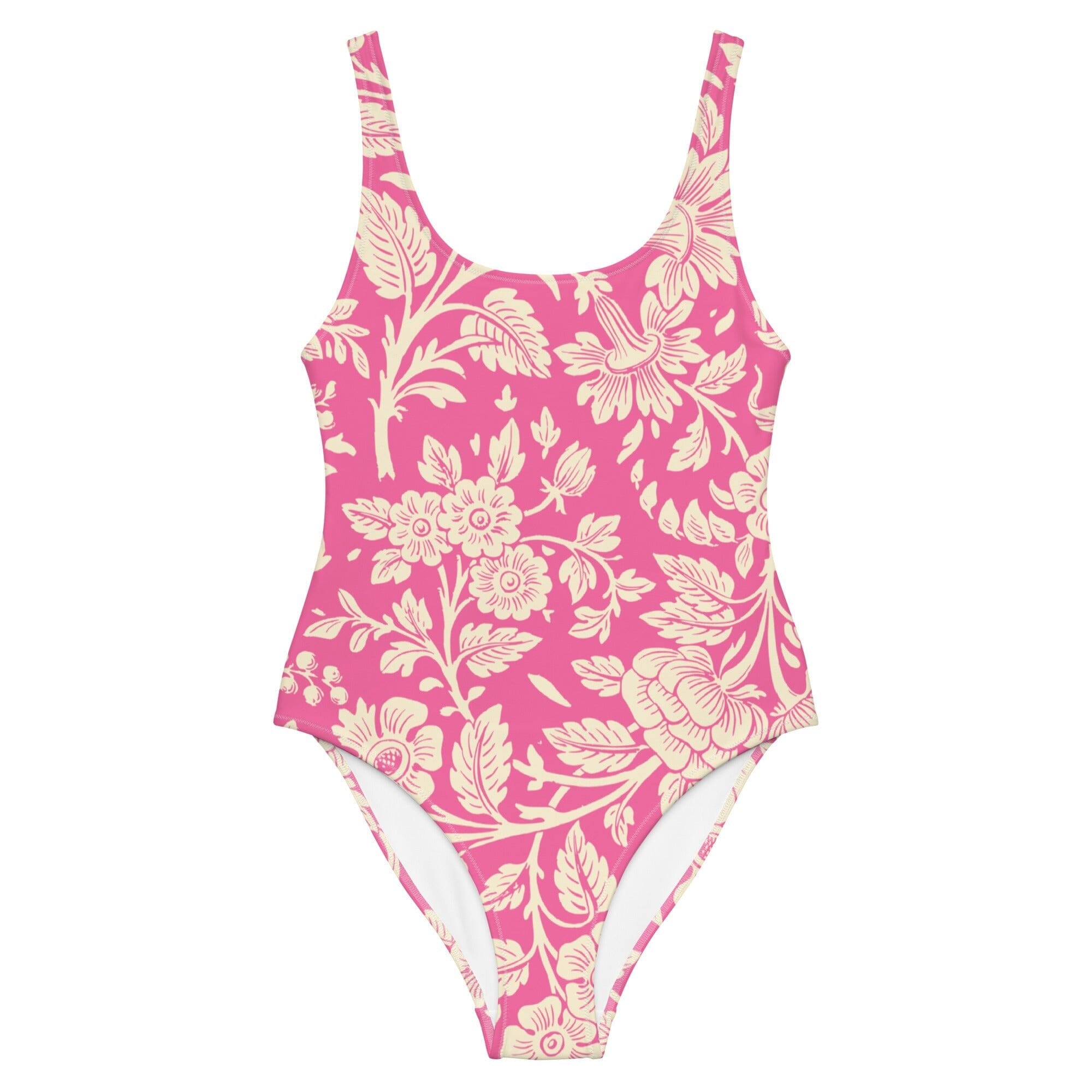 One Piece Swimsuit Pink Floral Antique. This one-piece swimsuit for all figures will bring out your best features. Enjoy the smooth fabric and the flattering design, and show it off by the sea or pool. Antique floral print is timeless, combined with the trendy neon pink for a fashionable look.
