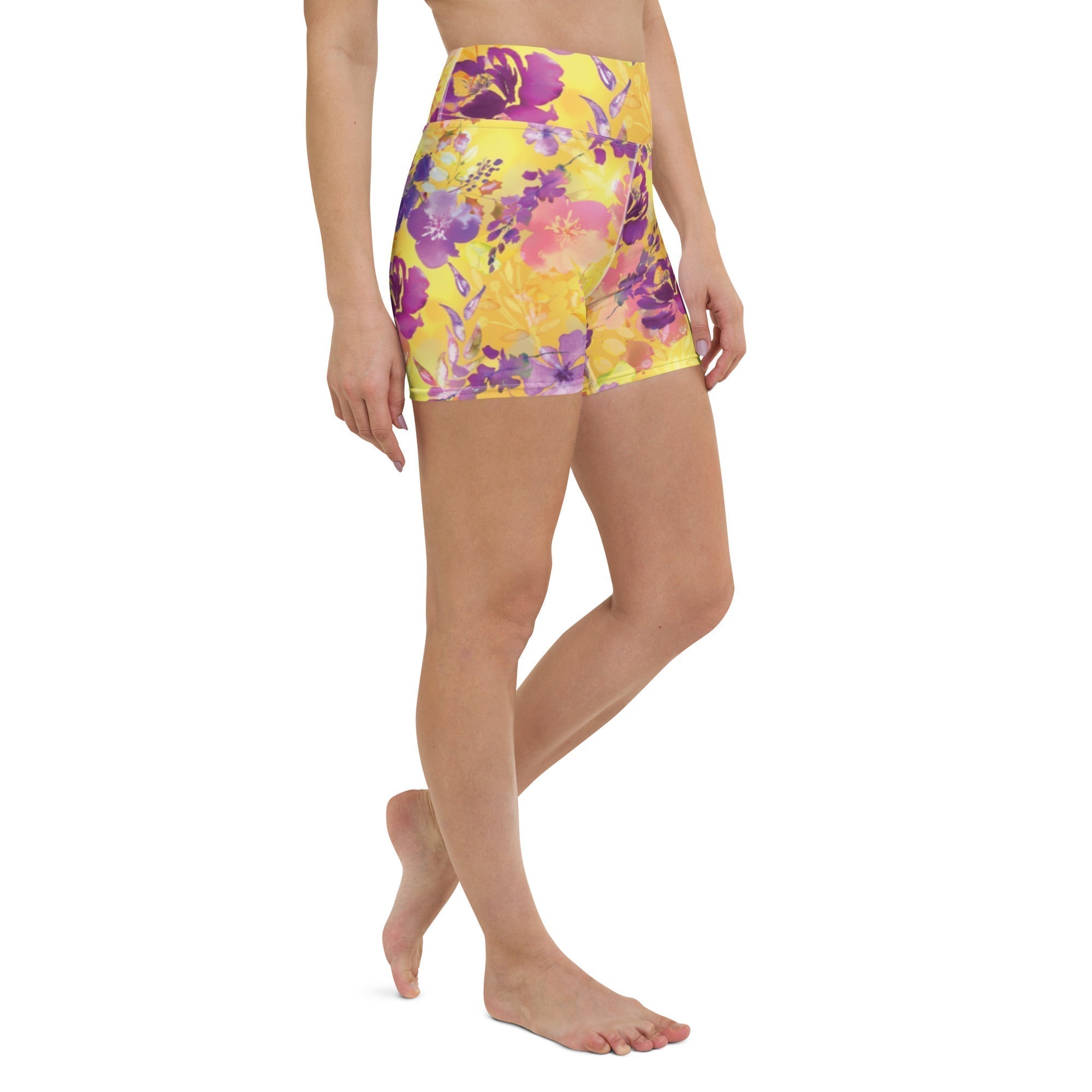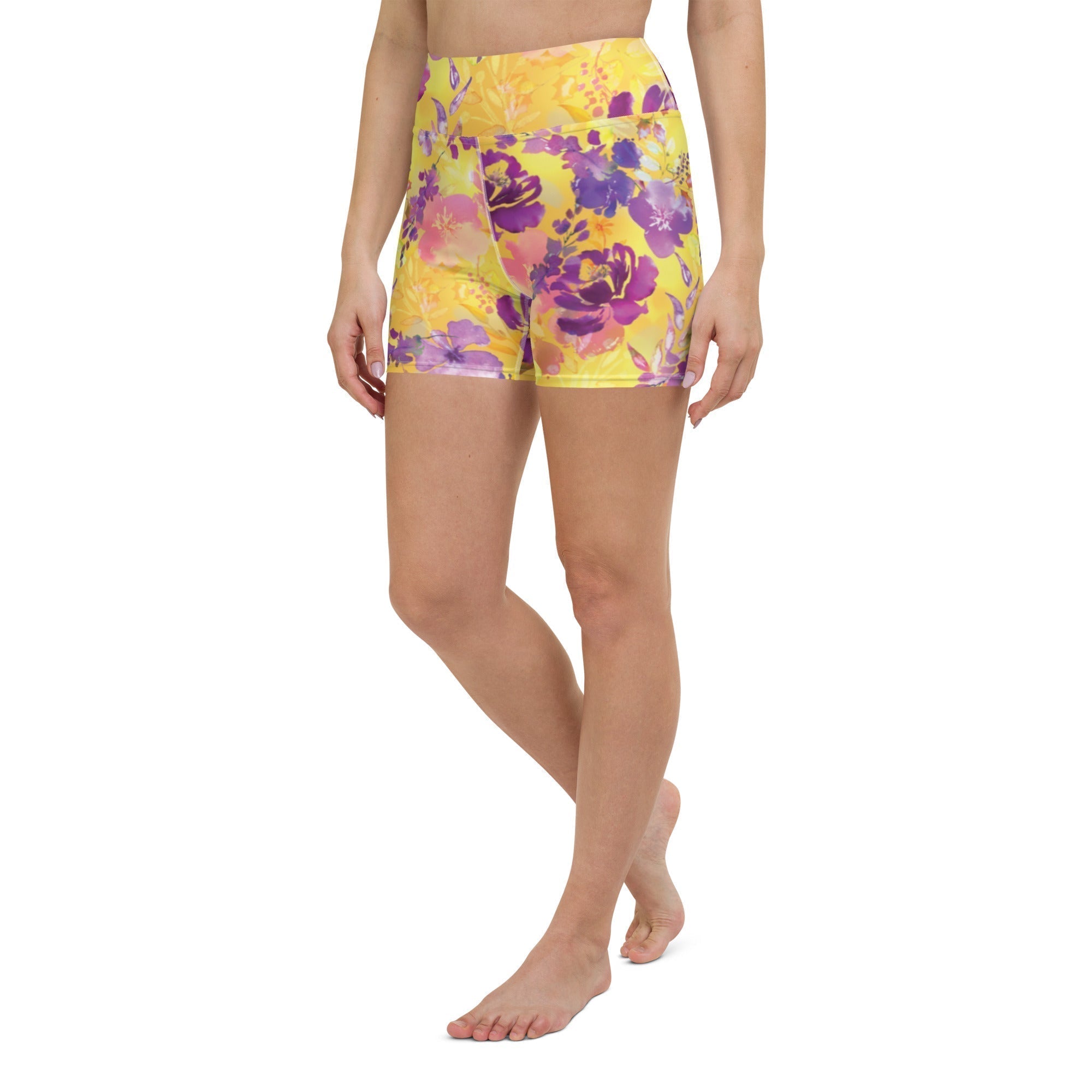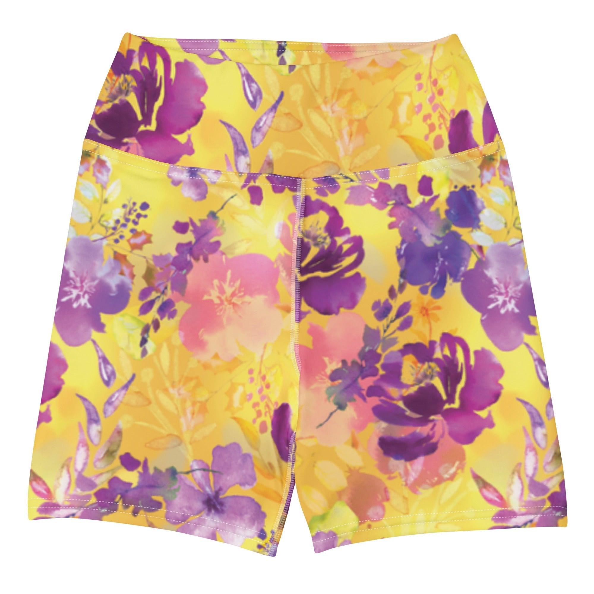 Floral biker shorts Golden yellow. Available in regular and high waist option - high waist is perfect for yoga and pilates