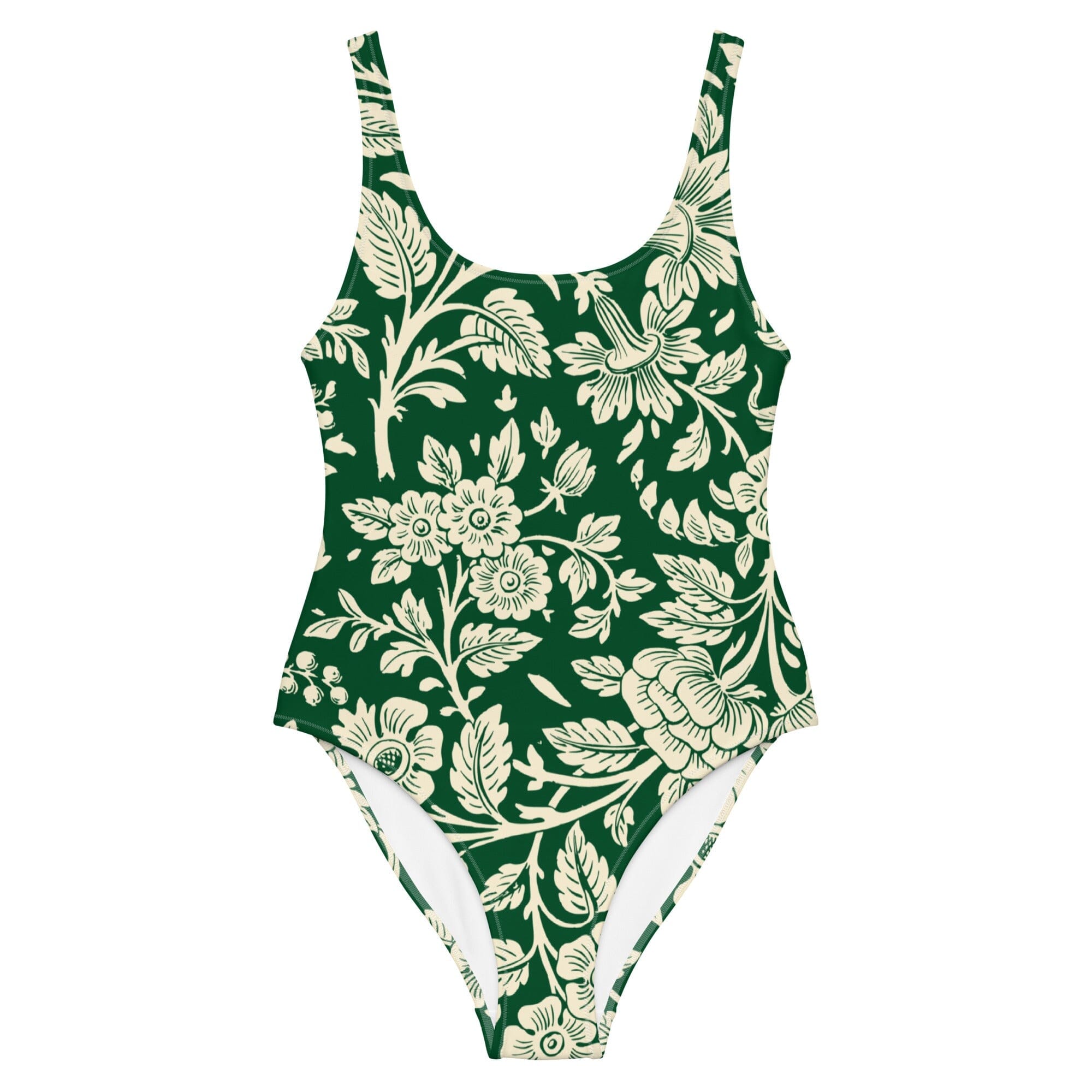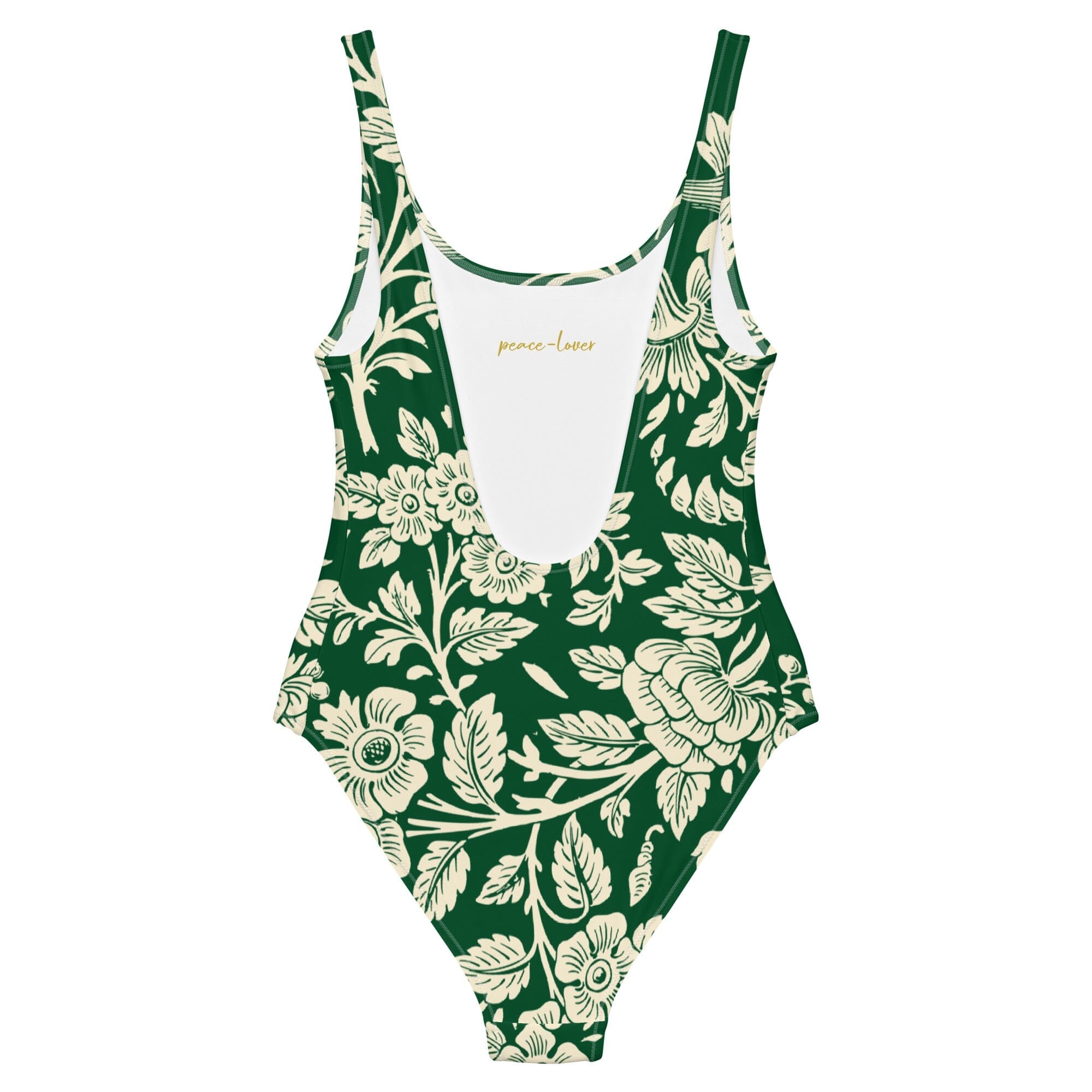 One Piece Swimsuit Emerald Green Floral peace-lover
