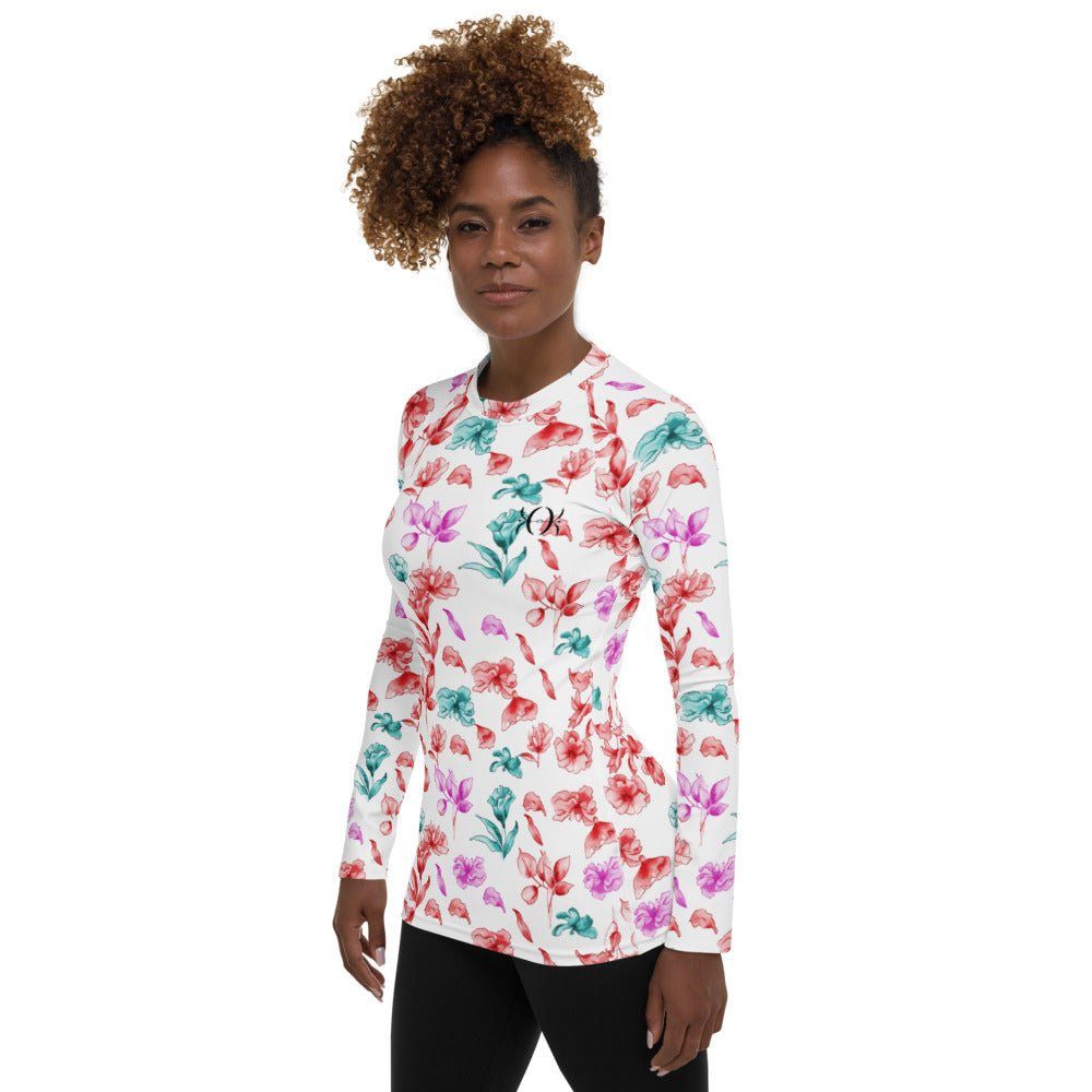 Women's Floral Rash Guard White long sleeves